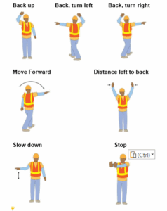 • Ensure that spotters and drivers agree on hand signals before backing up.